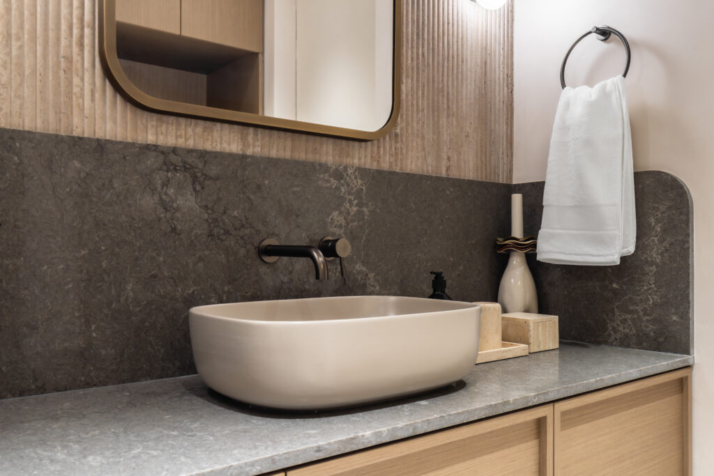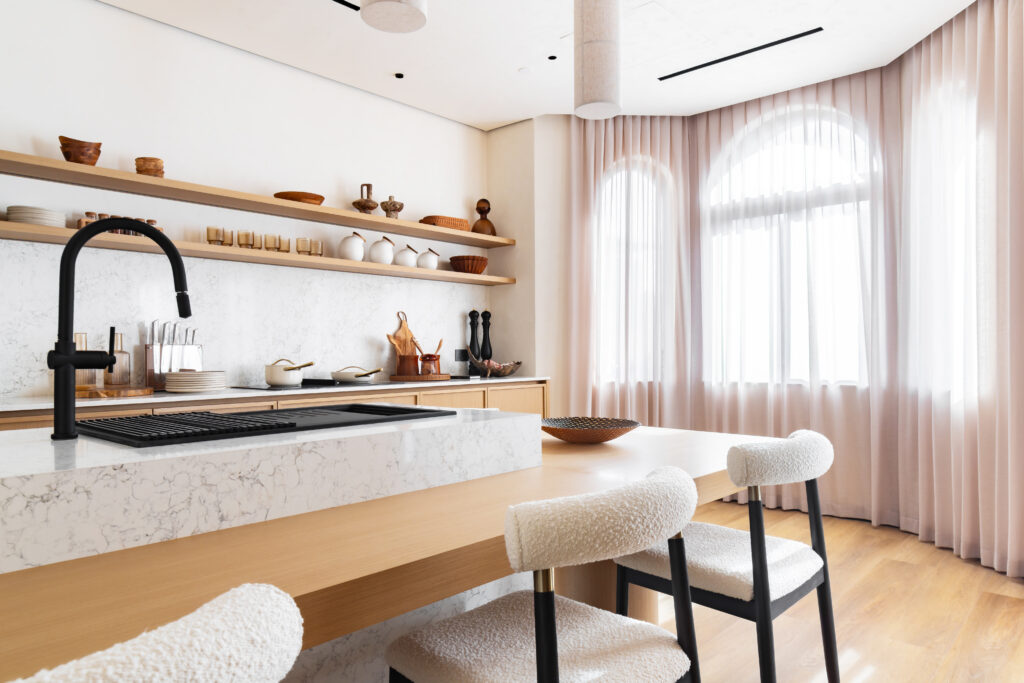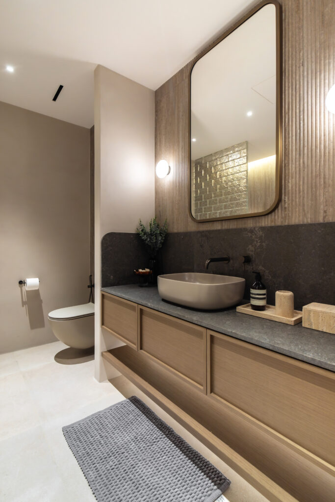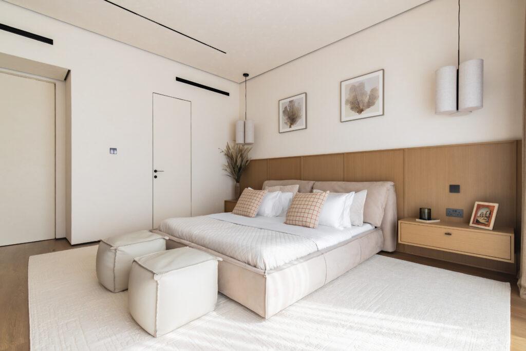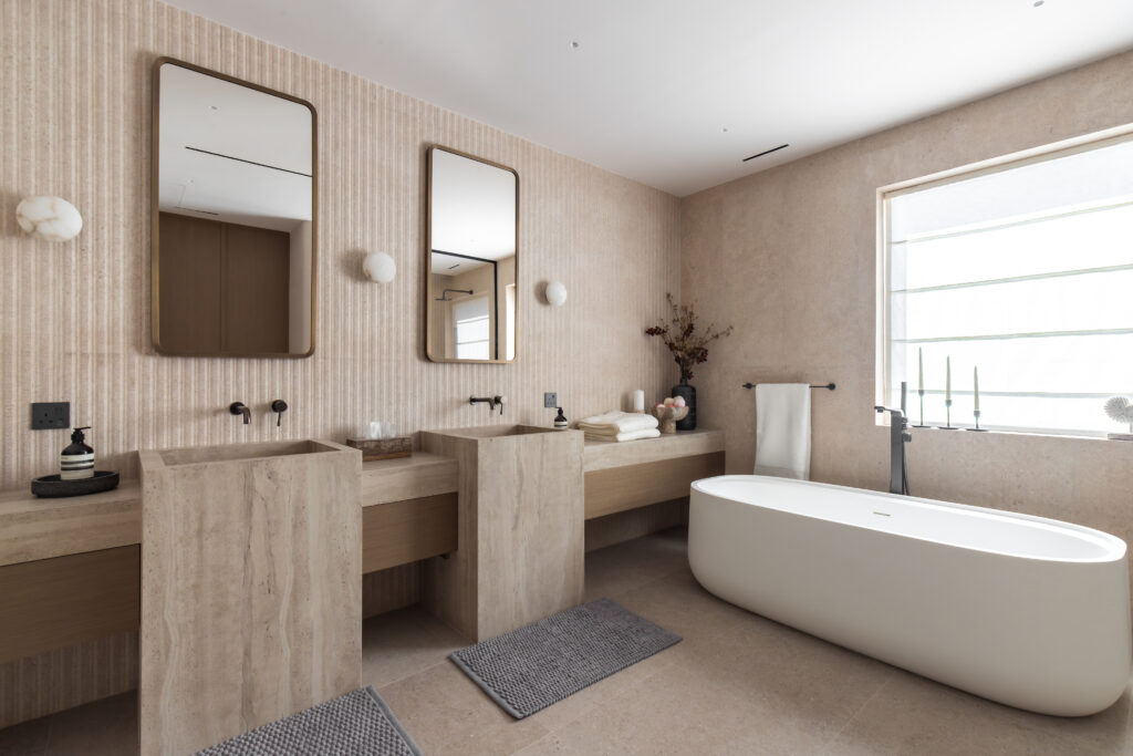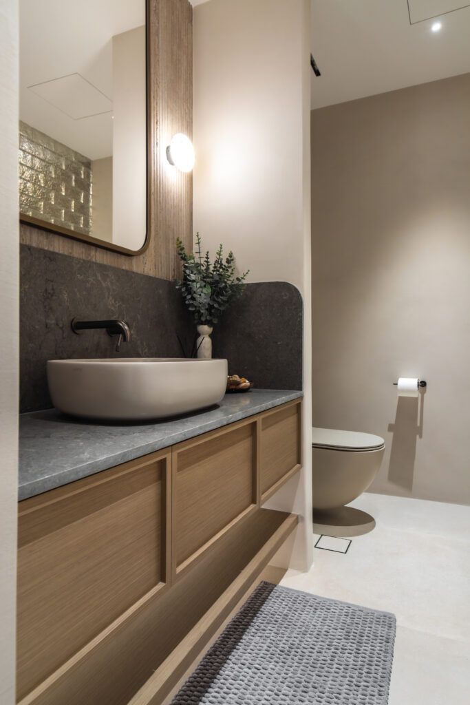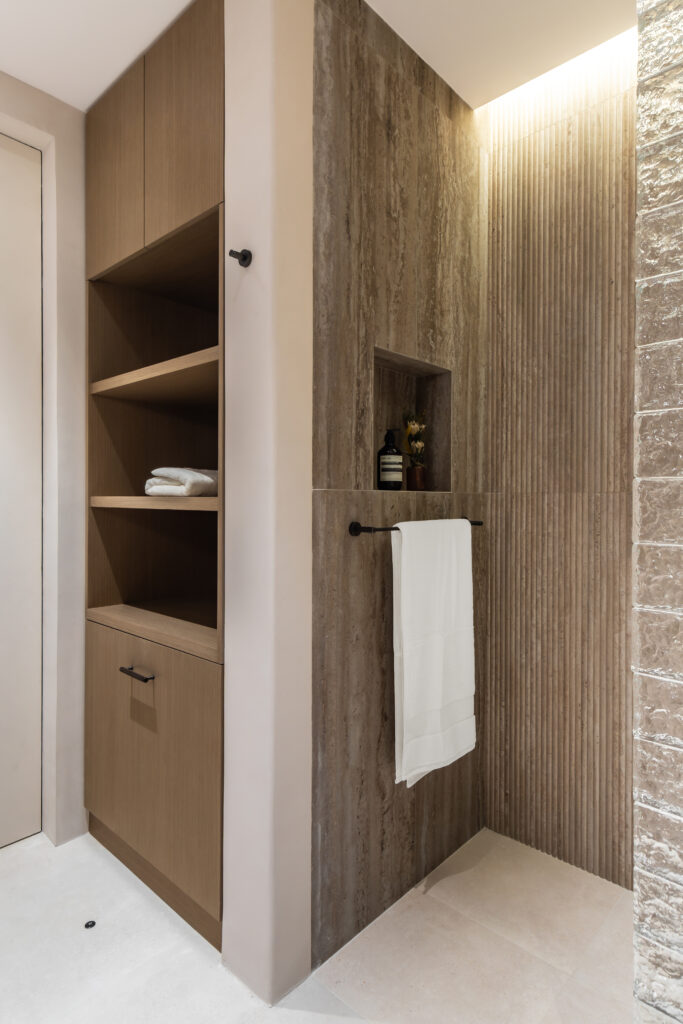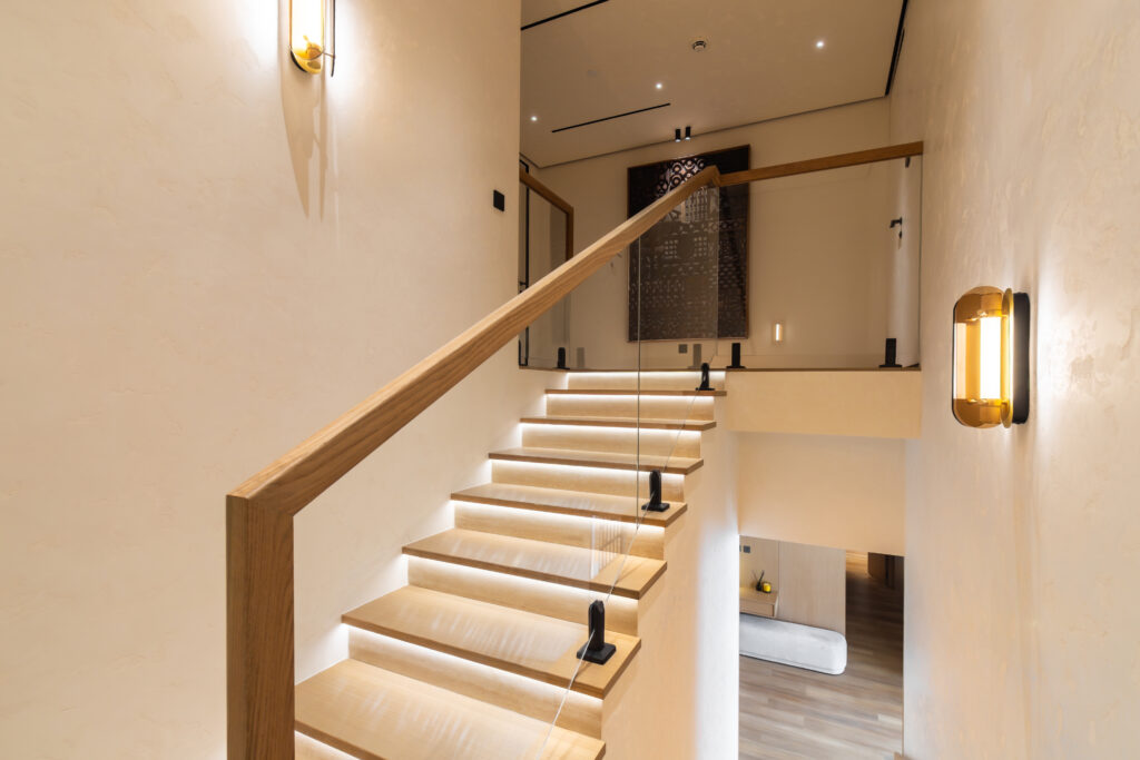 CCI’s delivery of GM10 reflects a calibre of craftsmanship and material curation that places this residence in a league of its own within the Golden Mile. Every element has been executed with a luxury-driven, precision-led philosophy, where finishes are not only aesthetically refined but selected for longevity, tactile comfort, and architectural coherence. Natural timber panelling, hand-finished plaster, fluted stone, and bespoke joinery are seamlessly integrated with concealed hardware and shadow-gap detailing to create a calm, gallery-like residential experience. Stone is sourced and fabricated with meticulous attention to grain continuity and book-matching, while sanitary ware, ironmongery, and lighting are specified from premium European manufacturers to ensure technical excellence.